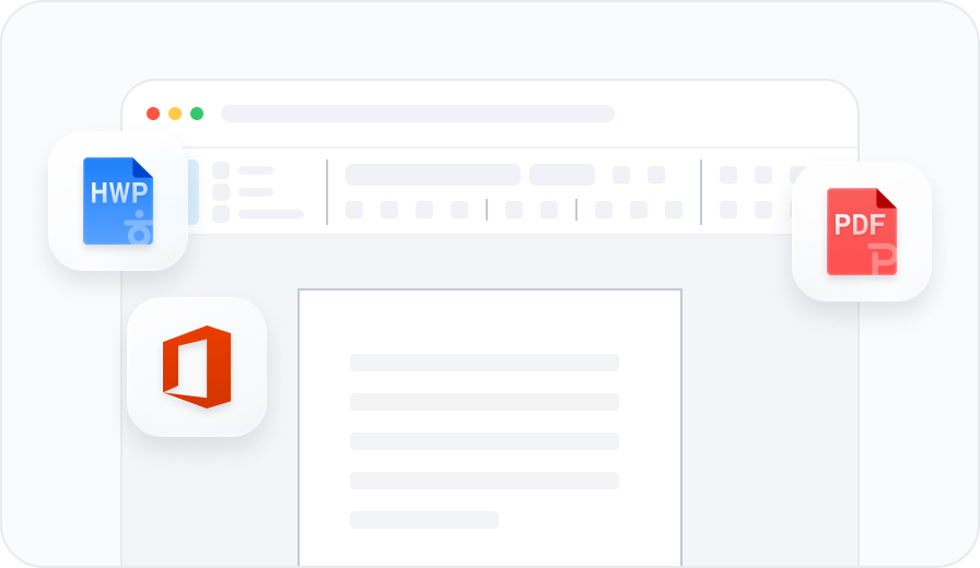Polaris Wordを1台のPCで、MS Word、HWP、ODT、PDF文書を編集できます。