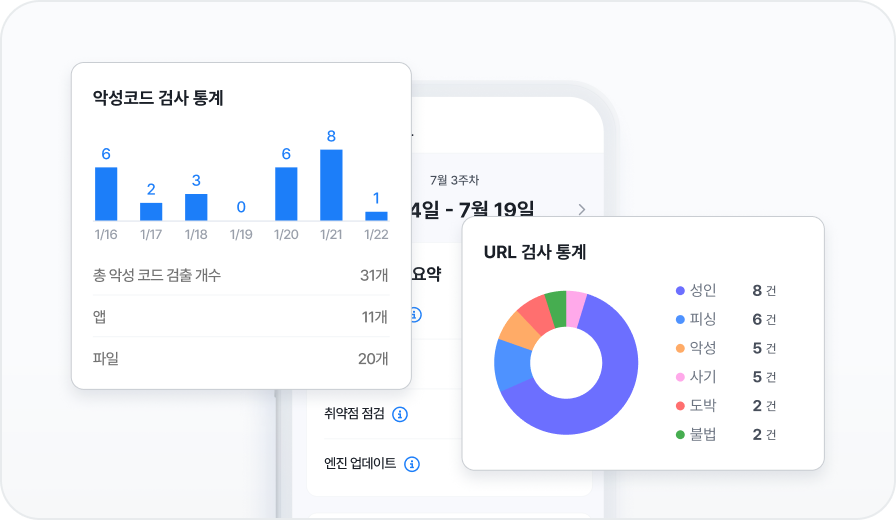 스미싱 검사부터 악성 앱 검사까지 모바일 보안에 필요한 모든 기능을 Polaris SecuOne 단 하나로 만나보세요.